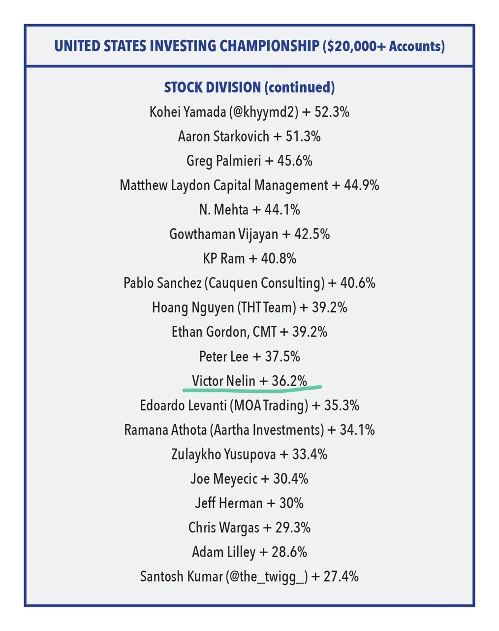 I will continue to compete in the U.S. Investment Championship. It remains the most credible way to publicly verify active management results, and I believe in submitting my process to that level of scrutiny.